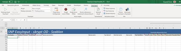 Kiedy serwis OData zostanie rozpoznany i parametry jego wywołania zostaną ustalone, można przejść do zdefiniowania skryptu OData w narzędziu EasyInput. Definiowanie skryptu OData można wykonać ręcznie w arkuszu EI_Script_OD, ale dużo łatwiej rozpocząć definicję wykorzystując automat, który uruchamia się przyciskiem menu wstążki „Dodaj serwis OData”.